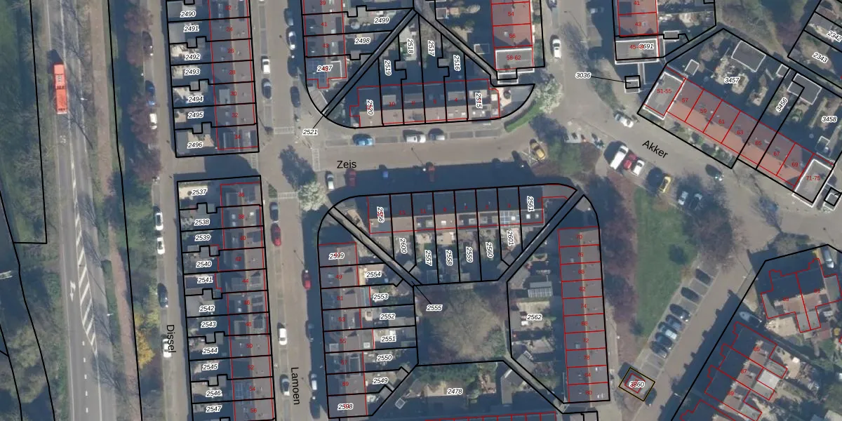 Gebruik de zoekbalk of klik op een perceel voor informatie over de adressen binnen dit perceel.