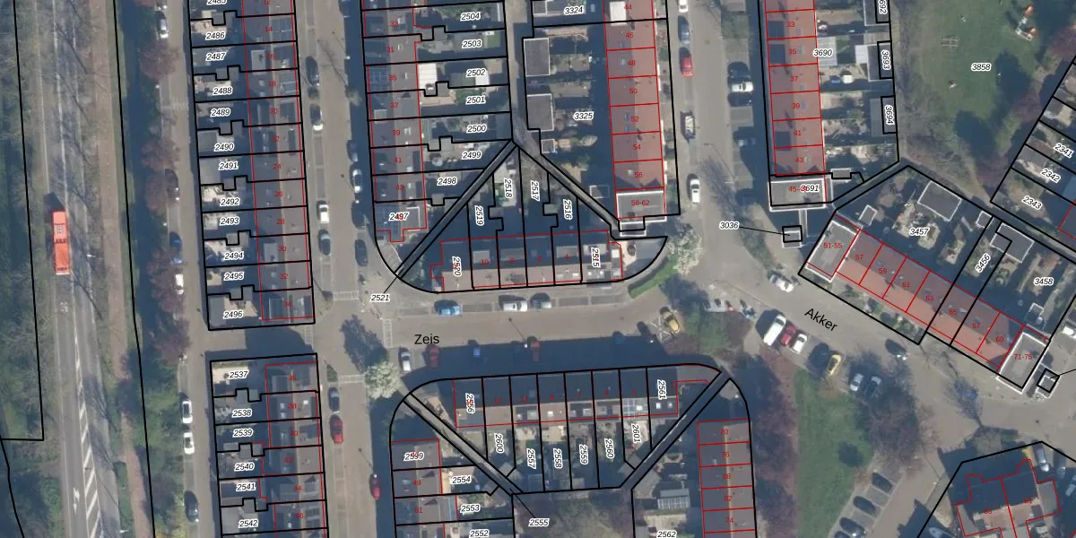 Gebruik de zoekbalk of klik op een perceel voor informatie over de adressen binnen dit perceel.