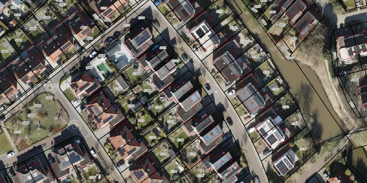Het perceel waarop Noordstar 26 staat heeft een oppervlakte van 329 m². Dit is een groot perceel. De perceeloppervlakte wordt geregistreerd door het Kadaster. Gedetailleerde informatie over de maten van dit perceel kunt u vinden in het rapport Kadastrale kaart met maatvoering van Noordstar 26.