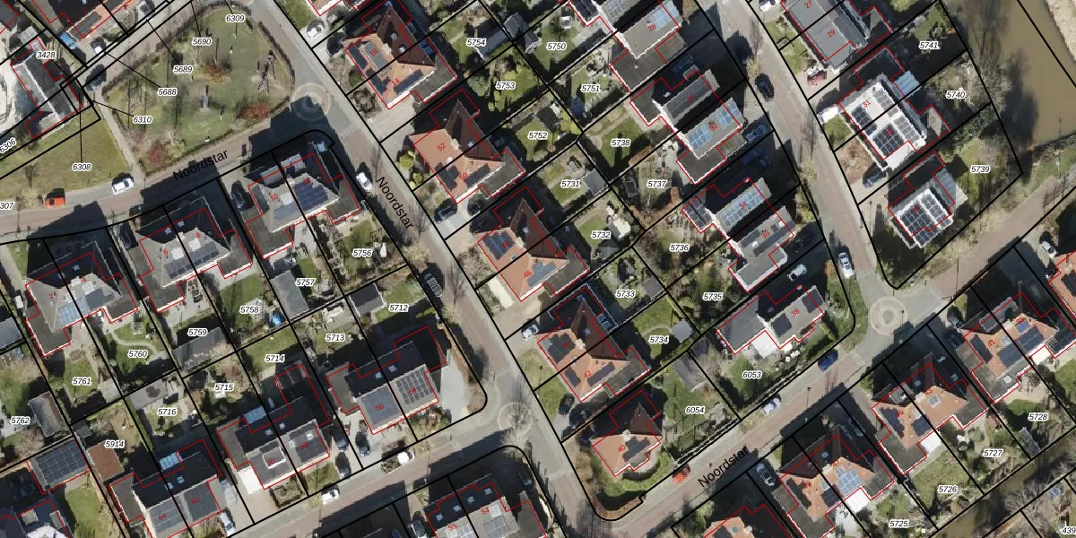 Het perceel waarop Noordstar 46 staat heeft een oppervlakte van 349 m². Dit is een groot perceel. De perceeloppervlakte wordt geregistreerd door het Kadaster. Gedetailleerde informatie over de maten van dit perceel kunt u vinden in het rapport Kadastrale kaart met maatvoering van Noordstar 46.