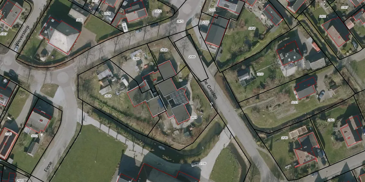 Het perceel waarop De Greiden 2 staat heeft een oppervlakte van 1018 m². Dit is een zeer groot perceel. De perceeloppervlakte wordt geregistreerd door het Kadaster. Gedetailleerde informatie over de maten van dit perceel kunt u vinden in het rapport Kadastrale kaart met maatvoering van De Greiden 2.