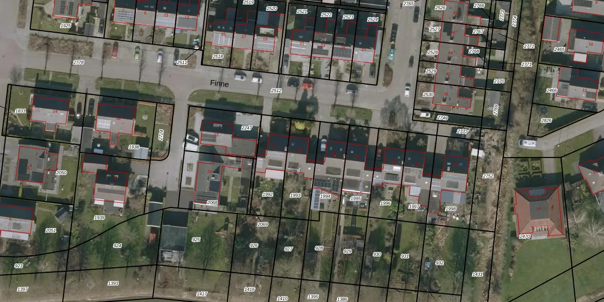 Het perceel waarop Finne 26 staat heeft een oppervlakte van 319 m². Dit is een groot perceel. De perceeloppervlakte wordt geregistreerd door het Kadaster. Gedetailleerde informatie over de maten van dit perceel kunt u vinden in het rapport Kadastrale kaart met maatvoering van Finne 26.