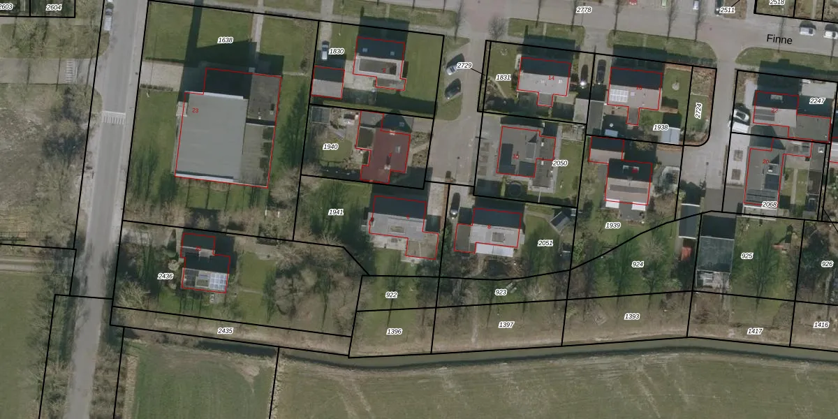 Het perceel waarop Finne 6 staat heeft een oppervlakte van 680 m². Dit is een groot perceel. De perceeloppervlakte wordt geregistreerd door het Kadaster. Gedetailleerde informatie over de maten van dit perceel kunt u vinden in het rapport Kadastrale kaart met maatvoering van Finne 6.