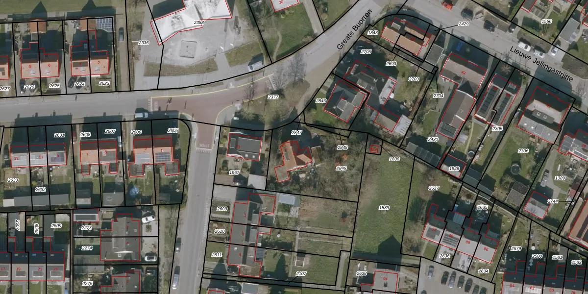Het perceel waarop Greate Buorren 21 staat heeft een oppervlakte van 739 m². Dit is een groot perceel. De perceeloppervlakte wordt geregistreerd door het Kadaster. Gedetailleerde informatie over de maten van dit perceel kunt u vinden in het rapport Kadastrale kaart met maatvoering van Greate Buorren 21.