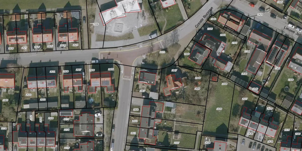 Het perceel waarop Greate Buorren 23 staat heeft een oppervlakte van 343 m². Dit is een groot perceel. De perceeloppervlakte wordt geregistreerd door het Kadaster. Gedetailleerde informatie over de maten van dit perceel kunt u vinden in het rapport Kadastrale kaart met maatvoering van Greate Buorren 23.