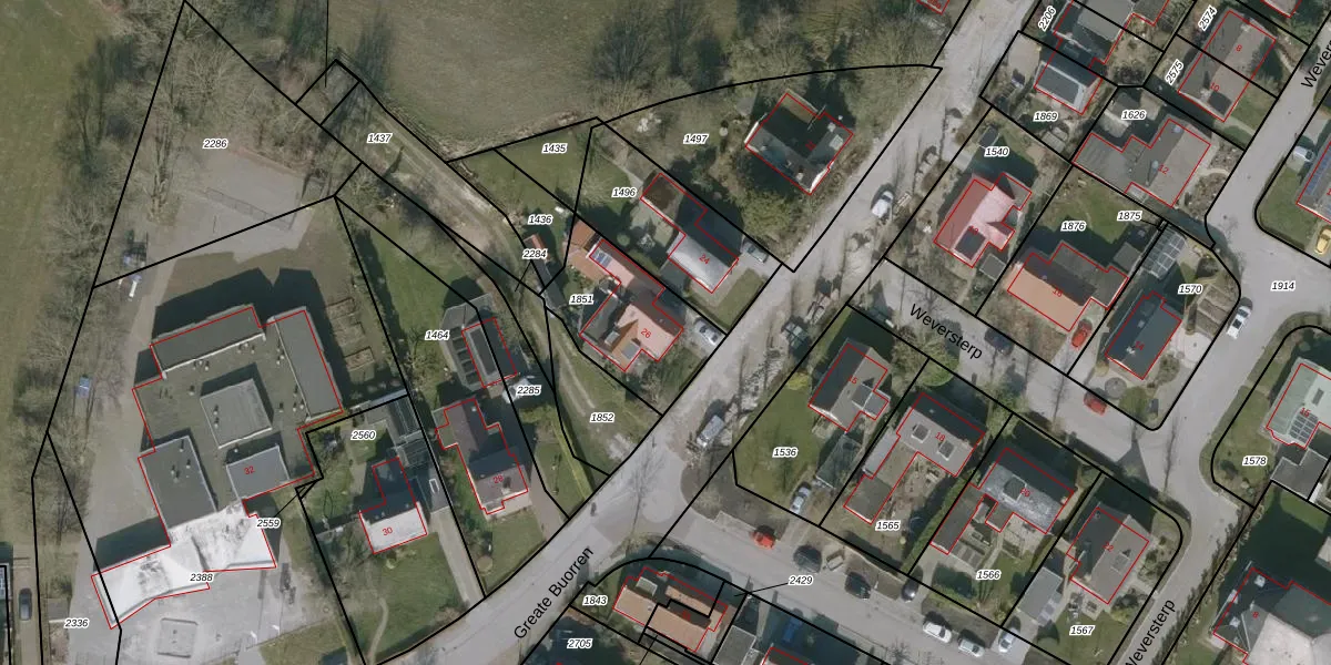 Het perceel waarop Greate Buorren 26 staat heeft een oppervlakte van 390 m². Dit is een groot perceel. De perceeloppervlakte wordt geregistreerd door het Kadaster. Gedetailleerde informatie over de maten van dit perceel kunt u vinden in het rapport Kadastrale kaart met maatvoering van Greate Buorren 26.