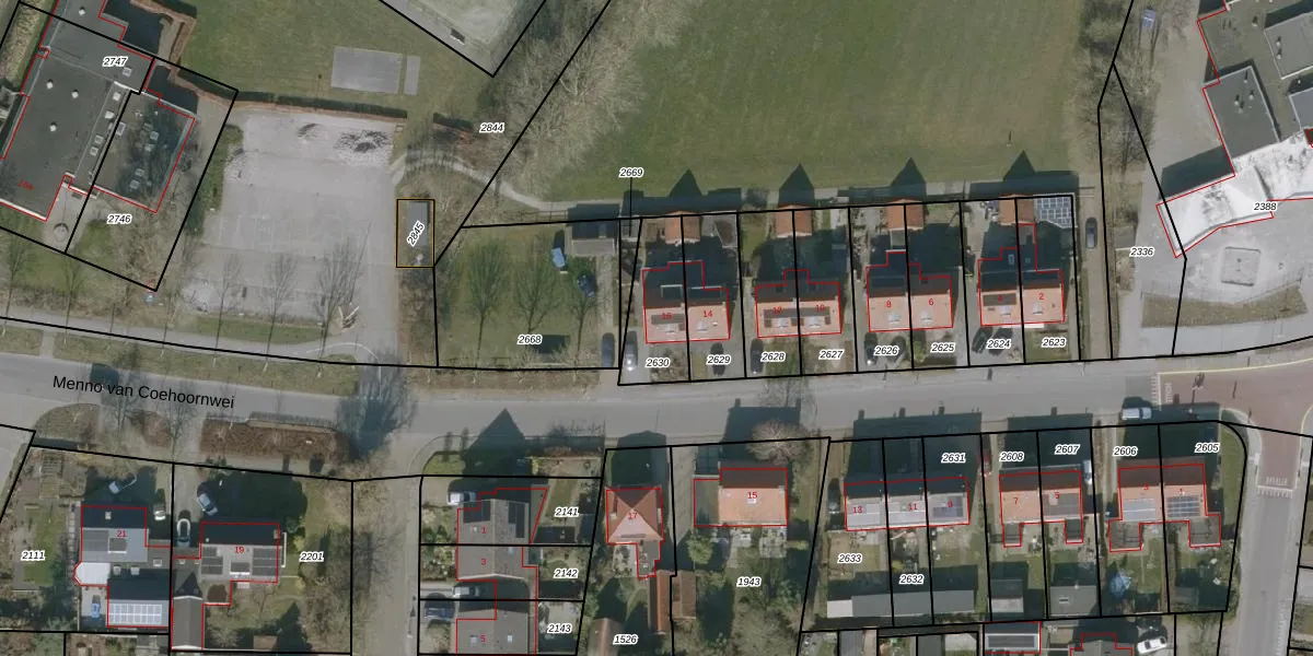 Gebruik de zoekbalk of klik op een perceel voor informatie over de adressen binnen dit perceel.