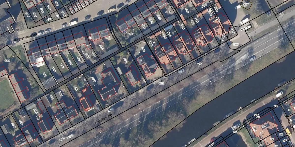 Het perceel waarop Parallelweg 27 staat heeft een oppervlakte van 376 m². Dit is een groot perceel. De perceeloppervlakte wordt geregistreerd door het Kadaster. Gedetailleerde informatie over de maten van dit perceel kunt u vinden in het rapport Kadastrale kaart met maatvoering van Parallelweg 27.
