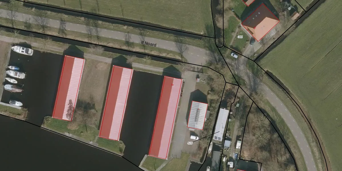 Het perceel waarop It Noard 1-a staat heeft een oppervlakte van 1,6 ha. Dit is een zeer groot perceel. De perceeloppervlakte wordt geregistreerd door het Kadaster. Gedetailleerde informatie over de maten van dit perceel kunt u vinden in het rapport Kadastrale kaart met maatvoering van It Noard 1-a.