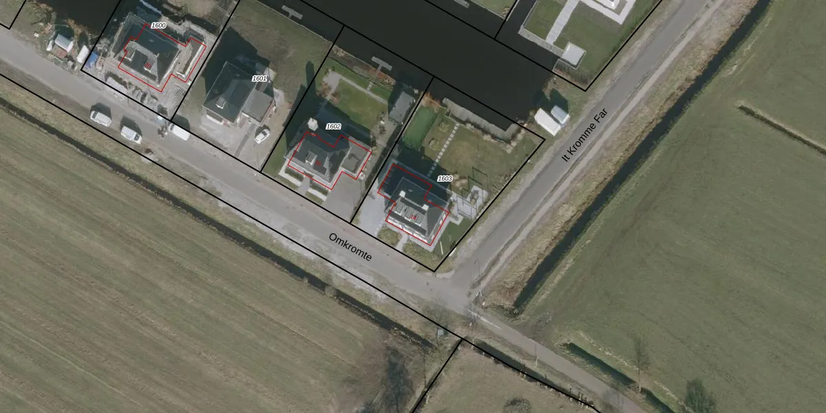 Omkromte 14 is gelegen op kadastraal perceel LWR02L1603. Deze kadastrale aanduiding is uniek en wordt gebruikt door het Kadaster om eigendomsrechten en andere zakelijke rechten vast te leggen. Het perceel maakt onderdeel uit van de kadastrale gemeente Langweer.