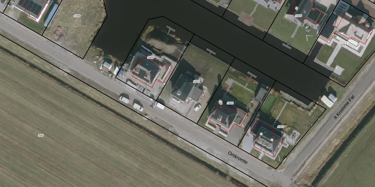 Het perceel waarop Omkromte 18 staat heeft een oppervlakte van 1030 m². Dit is een zeer groot perceel. De perceeloppervlakte wordt geregistreerd door het Kadaster. Gedetailleerde informatie over de maten van dit perceel kunt u vinden in het rapport Kadastrale kaart met maatvoering van Omkromte 18.