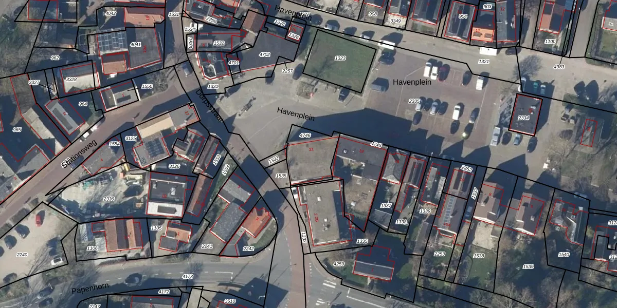 Het perceel waarop Havenplein 21 staat heeft een oppervlakte van 255 m². Dit is een middelgroot perceel. De perceeloppervlakte wordt geregistreerd door het Kadaster. Gedetailleerde informatie over de maten van dit perceel kunt u vinden in het rapport Kadastrale kaart met maatvoering van Havenplein 21.