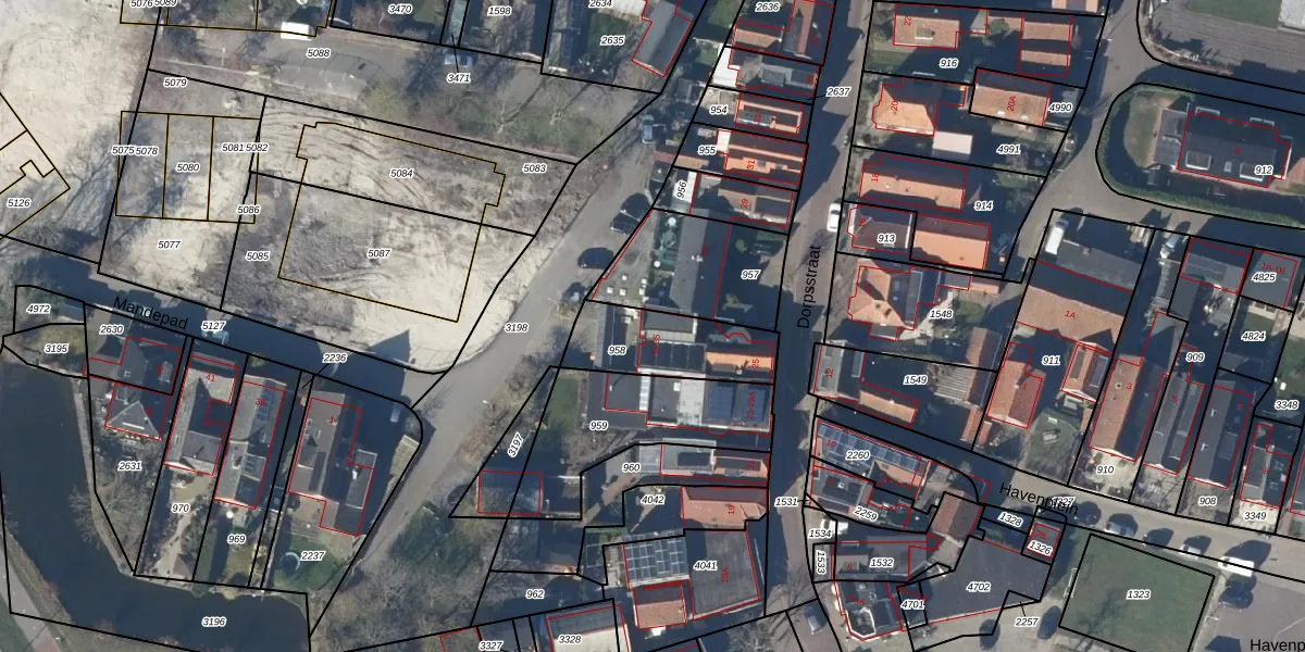 Het perceel waarop Mandepad 33 staat heeft een oppervlakte van 300 m². Dit is een groot perceel. De perceeloppervlakte wordt geregistreerd door het Kadaster. Gedetailleerde informatie over de maten van dit perceel kunt u vinden in het rapport Kadastrale kaart met maatvoering van Mandepad 33.