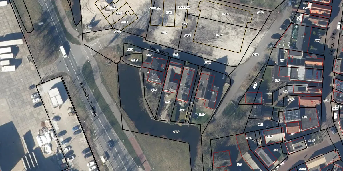 Gebruik de zoekbalk of klik op een perceel voor informatie over de adressen binnen dit perceel.
