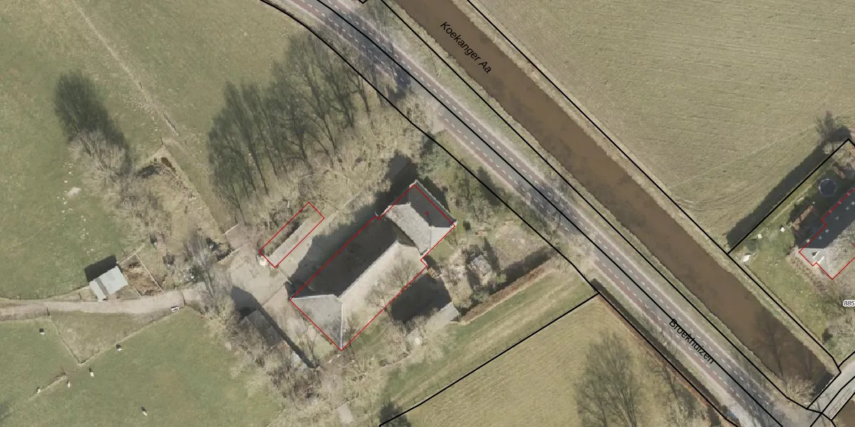 Het perceel waarop Broekhuizen 2 staat heeft een oppervlakte van 4,7 ha. Dit is een zeer groot perceel. De perceeloppervlakte wordt geregistreerd door het Kadaster. Gedetailleerde informatie over de maten van dit perceel kunt u vinden in het rapport Kadastrale kaart met maatvoering van Broekhuizen 2.