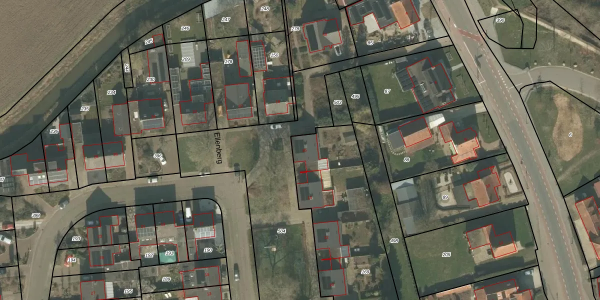 Het perceel waarop Ellenberg 16 staat heeft een oppervlakte van 2065 m². Dit is een zeer groot perceel. De perceeloppervlakte wordt geregistreerd door het Kadaster. Gedetailleerde informatie over de maten van dit perceel kunt u vinden in het rapport Kadastrale kaart met maatvoering van Ellenberg 16.