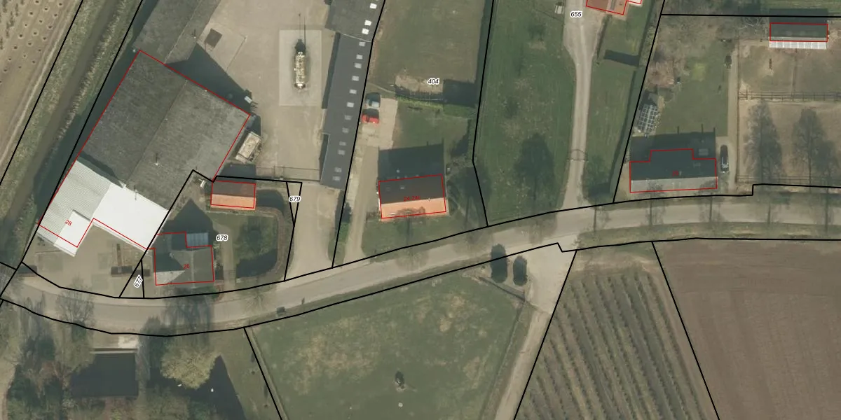 Het adres is gelegen op perceel 404 in de sectie F en de kadastrale gemeente Broekhuizen. De kadastrale aanduiding is aldus BHZ01-F-404. Het perceel is 2360 m² groot. Dat is kleiner dan de gemiddelde perceeloppervlakte in Broekhuizen, dat op 6048,51 m² ligt. Het grootste perceel in de kadastrale gemeente is 28,4 ha. Het kleinste perceel heeft een oppervlakte van 1 m². Er zijn 4 adressen aanwezig op het perceel. De huidige grenzen van het perceel zijn digitaal in de Basisregistratie Kadaster (BRK) geregistreerd op 20-06-2006.