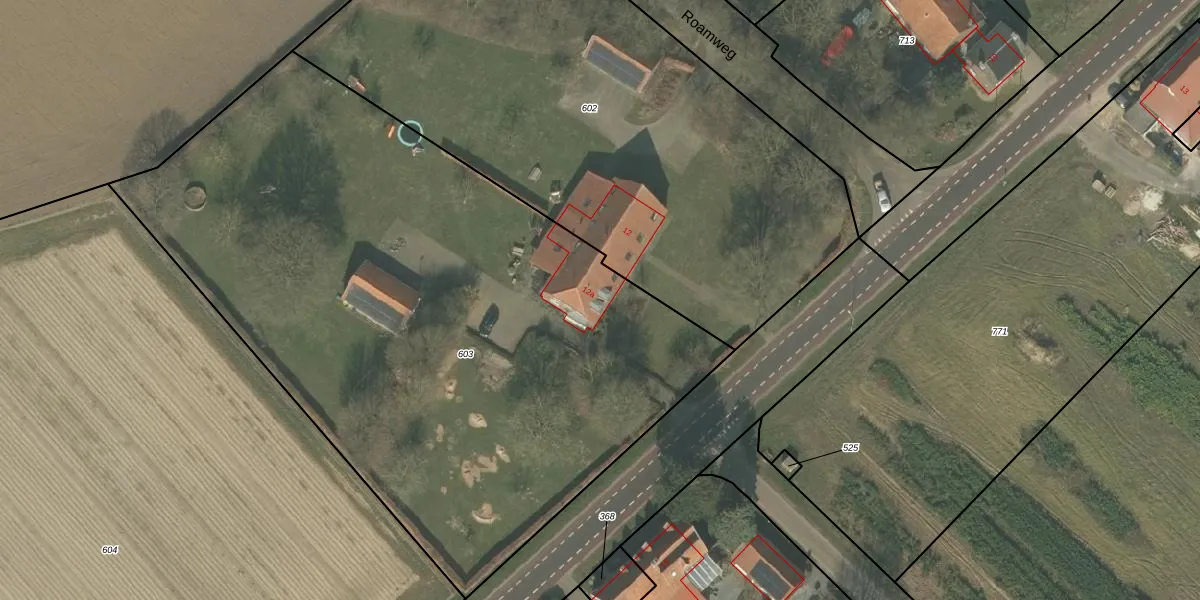 Het adres is gelegen op perceel 603 in de sectie F en de kadastrale gemeente Broekhuizen. De kadastrale aanduiding is aldus BHZ01-F-603. De gemiddelde perceelgrootte in Broekhuizen is 6048,51 m². Dit perceel is kleiner: de perceeloppervlakte bedraagt 4340 m². De grootste perceeloppervlakte in de kadastrale gemeente is 28,4 ha. De kleinste oppervlakte bedraagt 1 m². Dit is het enige adres dat aanwezig is op het perceel. De huidige grenzen van het perceel zijn digitaal in de Basisregistratie Kadaster (BRK) geregistreerd op 23-07-2012.