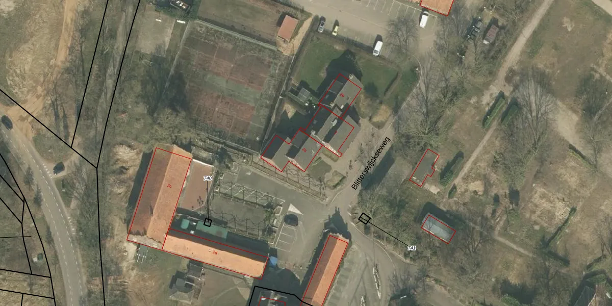 Het perceel waarop Blitterswijckseweg 2-a staat heeft een oppervlakte van 14,7 ha. Dit is een zeer groot perceel. De perceeloppervlakte wordt geregistreerd door het Kadaster. Gedetailleerde informatie over de maten van dit perceel kunt u vinden in het rapport Kadastrale kaart met maatvoering van Blitterswijckseweg 2-a.