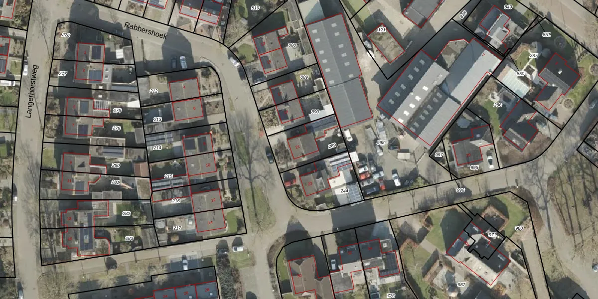 Het perceel waarop Rabbershoek 21 staat heeft een oppervlakte van 311 m². Dit is een groot perceel. De perceeloppervlakte wordt geregistreerd door het Kadaster. Gedetailleerde informatie over de maten van dit perceel kunt u vinden in het rapport Kadastrale kaart met maatvoering van Rabbershoek 21.