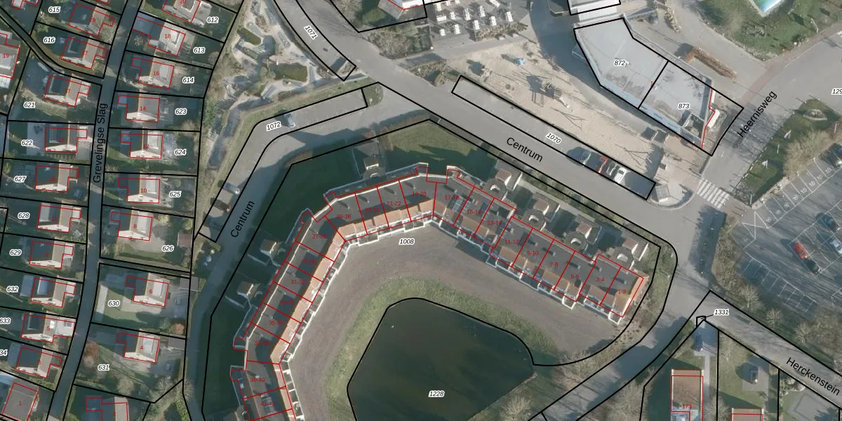 Het perceel waarop Centrum 20 staat heeft een oppervlakte van 5260 m². Dit is een zeer groot perceel. De perceeloppervlakte wordt geregistreerd door het Kadaster. Gedetailleerde informatie over de maten van dit perceel kunt u vinden in het rapport Kadastrale kaart met maatvoering van Centrum 20.