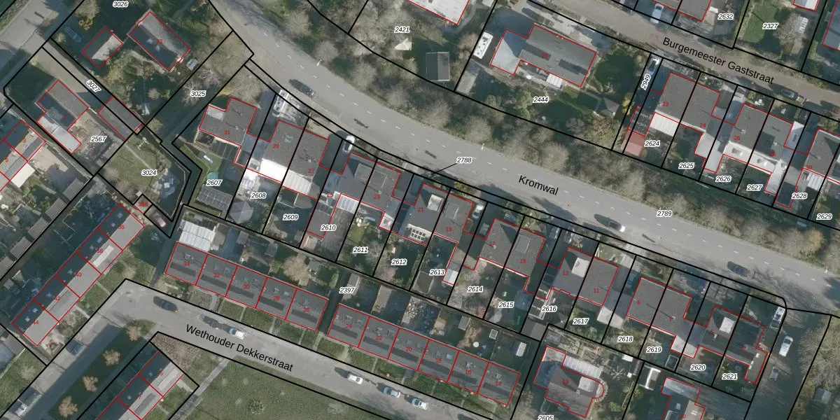 Het perceel waarop Kromwal 21 staat heeft een oppervlakte van 250 m². Dit is een middelgroot perceel. De perceeloppervlakte wordt geregistreerd door het Kadaster. Gedetailleerde informatie over de maten van dit perceel kunt u vinden in het rapport Kadastrale kaart met maatvoering van Kromwal 21.