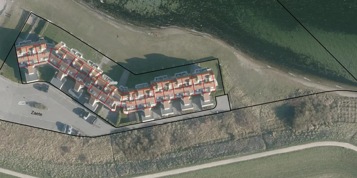 Zaete 34 is gelegen op kadastraal perceel BWH00N1010. Deze kadastrale aanduiding is uniek en wordt gebruikt door het Kadaster om eigendomsrechten en andere zakelijke rechten vast te leggen. Het perceel maakt onderdeel uit van de kadastrale gemeente Brouwershaven.