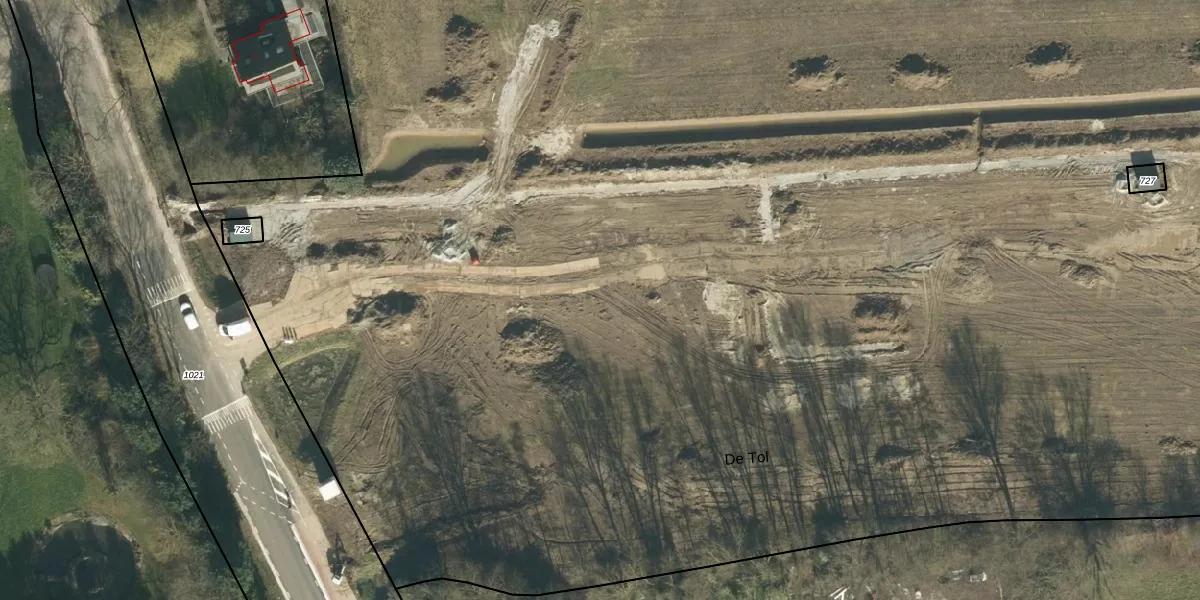 Het perceel waarop De Tol 1-a-5 staat heeft een oppervlakte van 5,0 ha. Dit is een zeer groot perceel. De perceeloppervlakte wordt geregistreerd door het Kadaster. Gedetailleerde informatie over de maten van dit perceel kunt u vinden in het rapport Kadastrale kaart met maatvoering van De Tol 1-a-5.