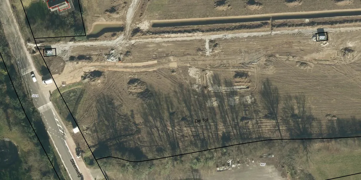 Het perceel waarop De Tol 1-c-2 staat heeft een oppervlakte van 5,0 ha. Dit is een zeer groot perceel. De perceeloppervlakte wordt geregistreerd door het Kadaster. Gedetailleerde informatie over de maten van dit perceel kunt u vinden in het rapport Kadastrale kaart met maatvoering van De Tol 1-c-2.