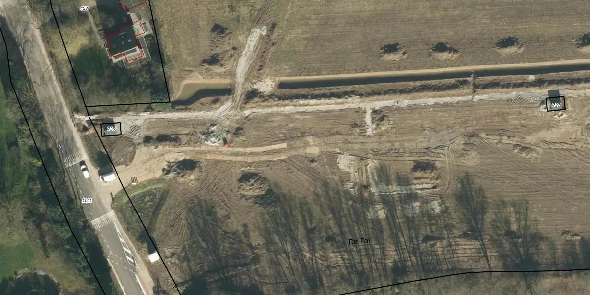 Het perceel waarop De Tol 1-b-6 staat heeft een oppervlakte van 5,0 ha. Dit is een zeer groot perceel. De perceeloppervlakte wordt geregistreerd door het Kadaster. Gedetailleerde informatie over de maten van dit perceel kunt u vinden in het rapport Kadastrale kaart met maatvoering van De Tol 1-b-6.
