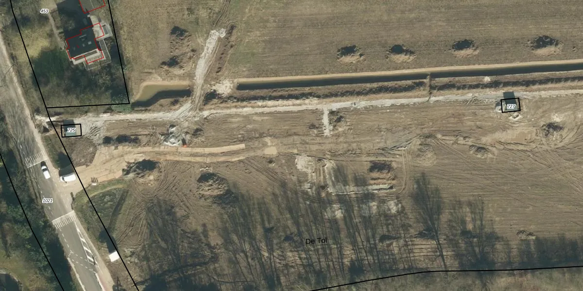 Het perceel waarop De Tol 1-b-8 staat heeft een oppervlakte van 5,0 ha. Dit is een zeer groot perceel. De perceeloppervlakte wordt geregistreerd door het Kadaster. Gedetailleerde informatie over de maten van dit perceel kunt u vinden in het rapport Kadastrale kaart met maatvoering van De Tol 1-b-8.