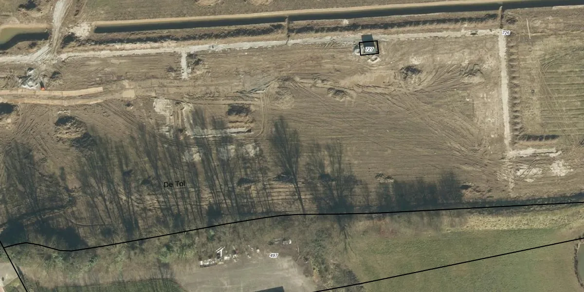 Het perceel waarop De Tol 3-d-2 staat heeft een oppervlakte van 5,0 ha. Dit is een zeer groot perceel. De perceeloppervlakte wordt geregistreerd door het Kadaster. Gedetailleerde informatie over de maten van dit perceel kunt u vinden in het rapport Kadastrale kaart met maatvoering van De Tol 3-d-2.