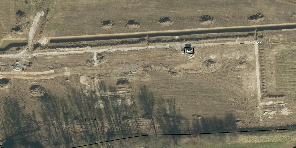 Het perceel waarop De Tol 3-a-8 staat heeft een oppervlakte van 5,0 ha. Dit is een zeer groot perceel. De perceeloppervlakte wordt geregistreerd door het Kadaster. Gedetailleerde informatie over de maten van dit perceel kunt u vinden in het rapport Kadastrale kaart met maatvoering van De Tol 3-a-8.