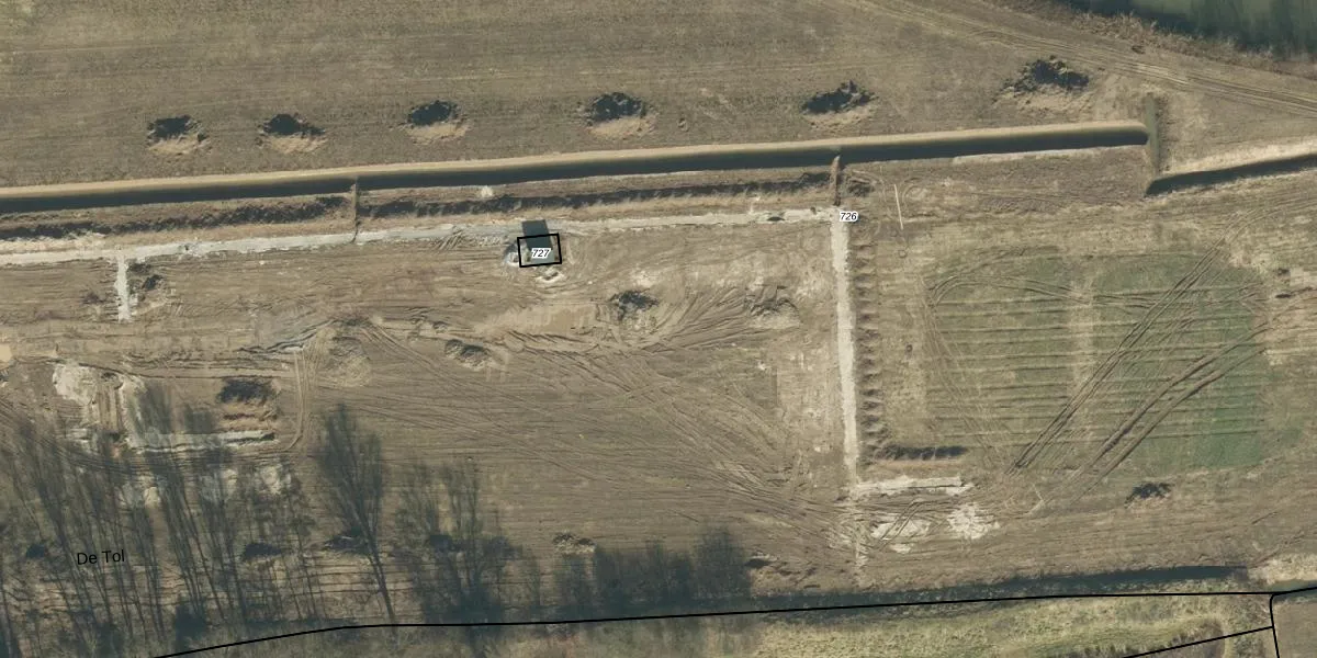 Het perceel waarop De Tol 5-b-8 staat heeft een oppervlakte van 5,0 ha. Dit is een zeer groot perceel. De perceeloppervlakte wordt geregistreerd door het Kadaster. Gedetailleerde informatie over de maten van dit perceel kunt u vinden in het rapport Kadastrale kaart met maatvoering van De Tol 5-b-8.