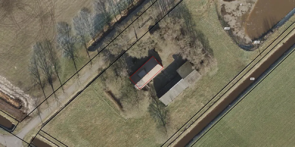 Kuilenweg 1 is gelegen op kadastraal perceel HDB01AB1384. Deze kadastrale aanduiding is uniek en wordt gebruikt door het Kadaster om eigendomsrechten en andere zakelijke rechten vast te leggen. Het perceel maakt onderdeel uit van de kadastrale gemeente Ambt-Hardenberg.