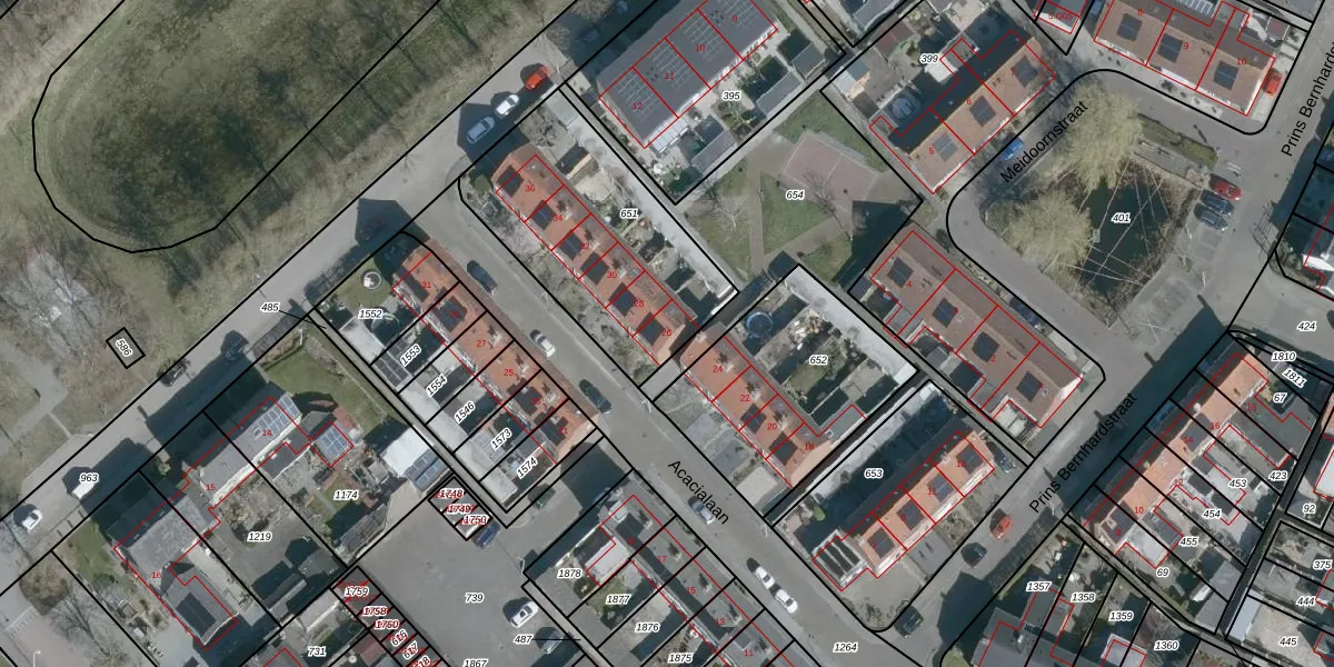 Het perceel waarop Acacialaan 26 staat heeft een oppervlakte van 857 m². Dit is een groot perceel. De perceeloppervlakte wordt geregistreerd door het Kadaster. Gedetailleerde informatie over de maten van dit perceel kunt u vinden in het rapport Kadastrale kaart met maatvoering van Acacialaan 26.