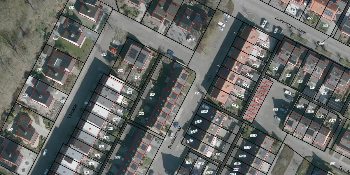 Het perceel waarop Boeijerstraat 21 staat heeft een oppervlakte van 944 m². Dit is een groot perceel. De perceeloppervlakte wordt geregistreerd door het Kadaster. Gedetailleerde informatie over de maten van dit perceel kunt u vinden in het rapport Kadastrale kaart met maatvoering van Boeijerstraat 21.