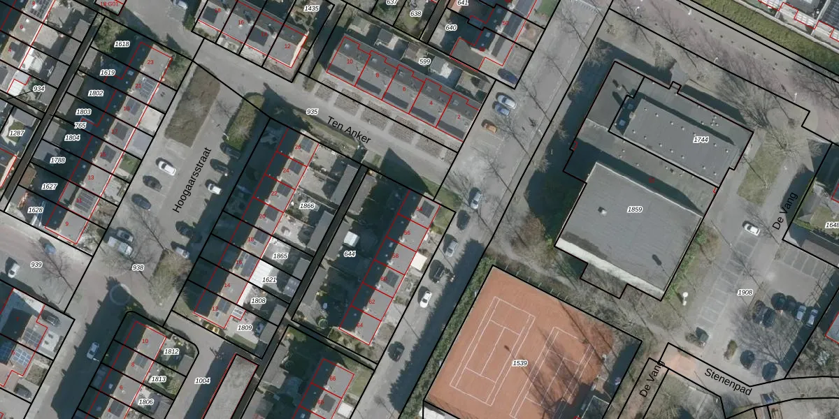 Het perceel waarop Dokter de Kockstraat 54 staat heeft een oppervlakte van 950 m². Dit is een groot perceel. De perceeloppervlakte wordt geregistreerd door het Kadaster. Gedetailleerde informatie over de maten van dit perceel kunt u vinden in het rapport Kadastrale kaart met maatvoering van Dokter de Kockstraat 54.