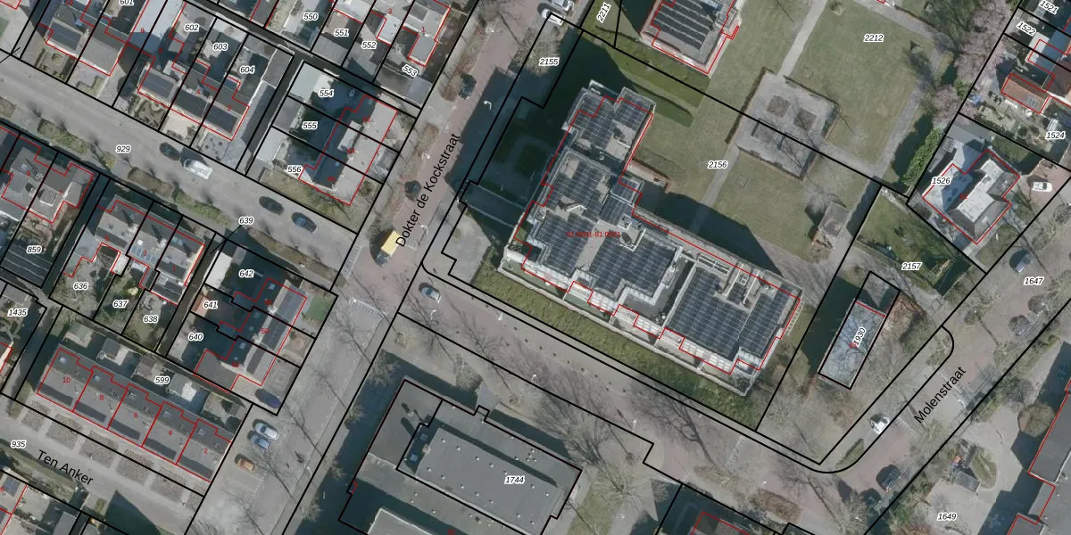 Het perceel waarop Dokter de Kockstraat 81-0002 staat heeft een oppervlakte van 3412 m². Dit is een zeer groot perceel. De perceeloppervlakte wordt geregistreerd door het Kadaster. Gedetailleerde informatie over de maten van dit perceel kunt u vinden in het rapport Kadastrale kaart met maatvoering van Dokter de Kockstraat 81-0002.