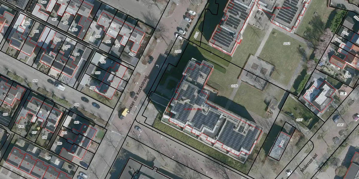 Het perceel waarop Dokter de Kockstraat 81-0008 staat heeft een oppervlakte van 3412 m². Dit is een zeer groot perceel. De perceeloppervlakte wordt geregistreerd door het Kadaster. Gedetailleerde informatie over de maten van dit perceel kunt u vinden in het rapport Kadastrale kaart met maatvoering van Dokter de Kockstraat 81-0008.