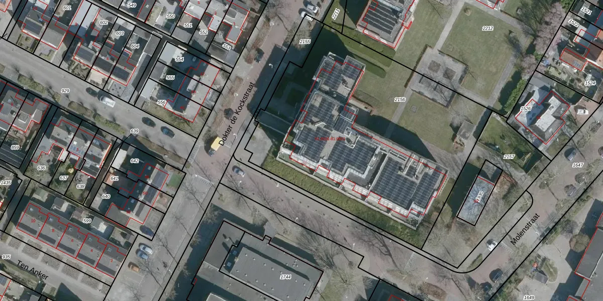 Het perceel waarop Dokter de Kockstraat 81-0009 staat heeft een oppervlakte van 3412 m². Dit is een zeer groot perceel. De perceeloppervlakte wordt geregistreerd door het Kadaster. Gedetailleerde informatie over de maten van dit perceel kunt u vinden in het rapport Kadastrale kaart met maatvoering van Dokter de Kockstraat 81-0009.