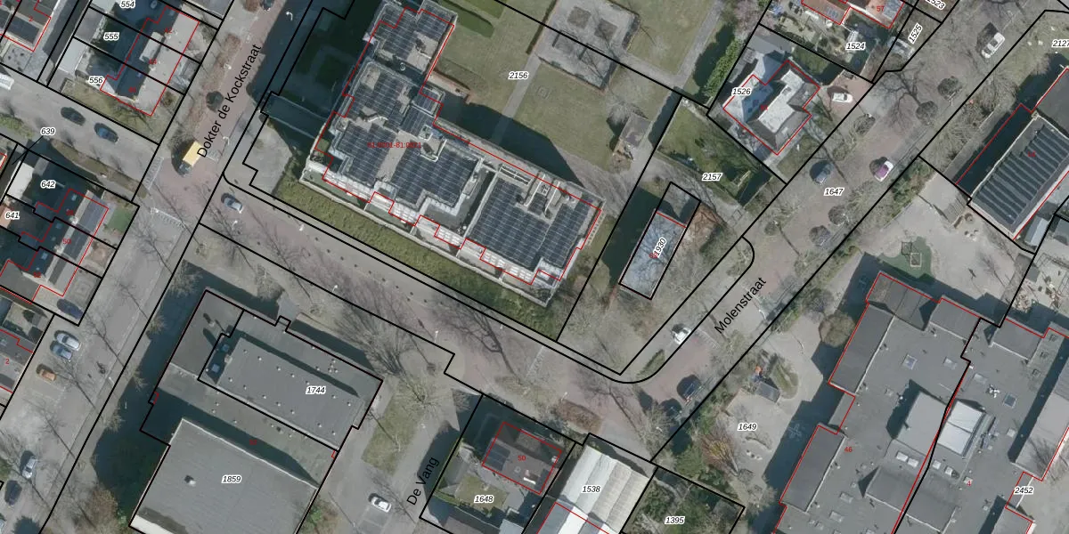 Het perceel waarop Dokter de Kockstraat 81-0013 staat heeft een oppervlakte van 3412 m². Dit is een zeer groot perceel. De perceeloppervlakte wordt geregistreerd door het Kadaster. Gedetailleerde informatie over de maten van dit perceel kunt u vinden in het rapport Kadastrale kaart met maatvoering van Dokter de Kockstraat 81-0013.