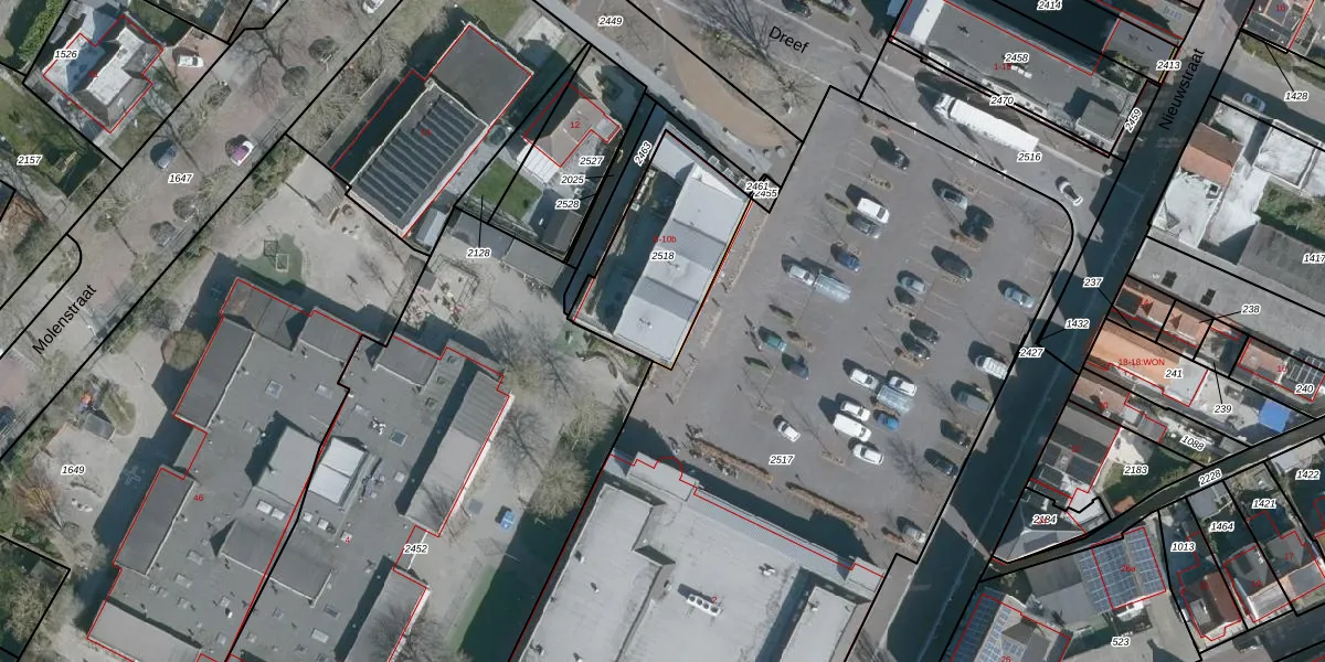 Het perceel waarop Dreef 6 staat heeft een oppervlakte van 503 m². Dit is een groot perceel. De perceeloppervlakte wordt geregistreerd door het Kadaster. Gedetailleerde informatie over de maten van dit perceel kunt u vinden in het rapport Kadastrale kaart met maatvoering van Dreef 6.