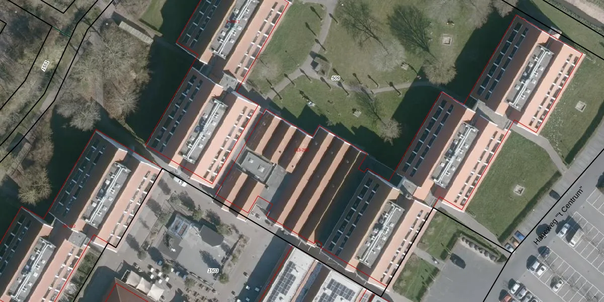 Het perceel waarop Hageweg "'t Centrum" 148 staat heeft een oppervlakte van 1,9 ha. Dit is een zeer groot perceel. De perceeloppervlakte wordt geregistreerd door het Kadaster. Gedetailleerde informatie over de maten van dit perceel kunt u vinden in het rapport Kadastrale kaart met maatvoering van Hageweg "'t Centrum" 148.