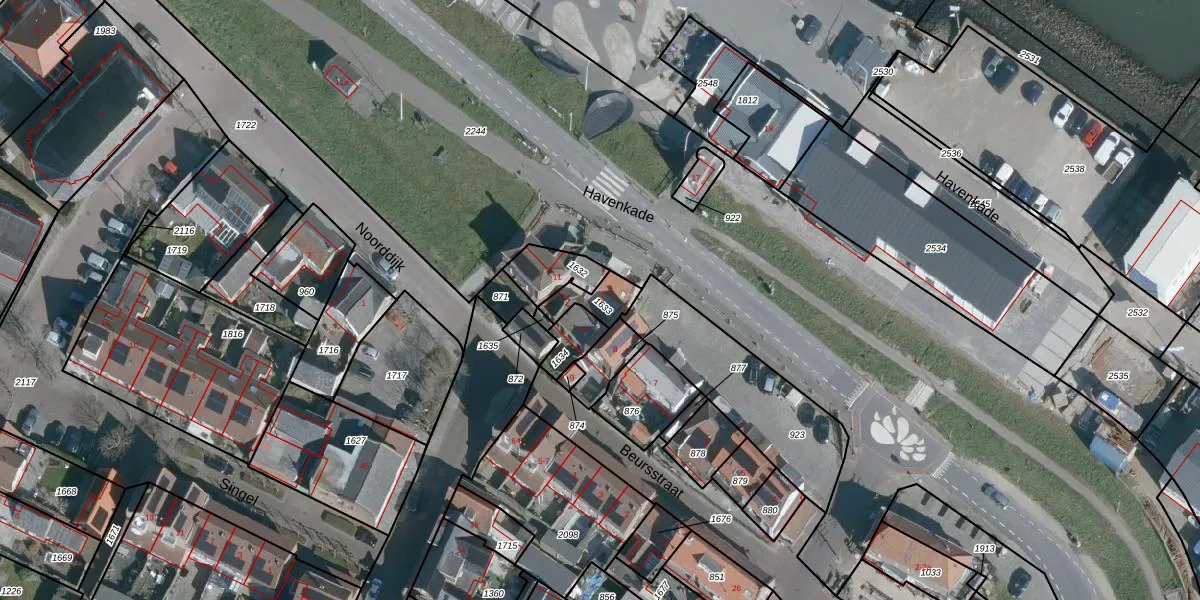 Havenkade 9 is gelegen op kadastraal perceel BNS00F1633. Deze kadastrale aanduiding is uniek en wordt gebruikt door het Kadaster om eigendomsrechten en andere zakelijke rechten vast te leggen. Het perceel maakt onderdeel uit van de kadastrale gemeente Bruinisse.