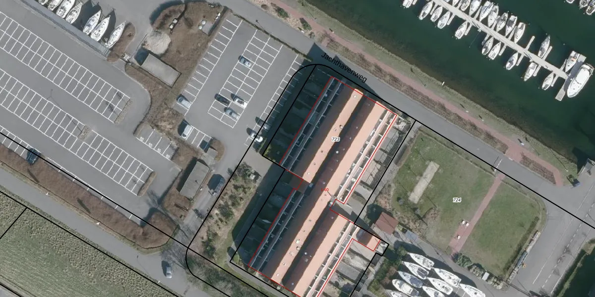 Jachthavenweg 13 is gelegen op kadastraal perceel BNS00G723. Deze kadastrale aanduiding is uniek en wordt gebruikt door het Kadaster om eigendomsrechten en andere zakelijke rechten vast te leggen. Het perceel maakt onderdeel uit van de kadastrale gemeente Bruinisse.