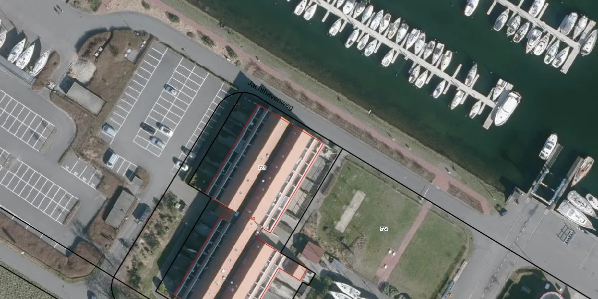 Jachthavenweg 32 is gelegen op kadastraal perceel BNS00G723. Deze kadastrale aanduiding is uniek en wordt gebruikt door het Kadaster om eigendomsrechten en andere zakelijke rechten vast te leggen. Het perceel maakt onderdeel uit van de kadastrale gemeente Bruinisse.