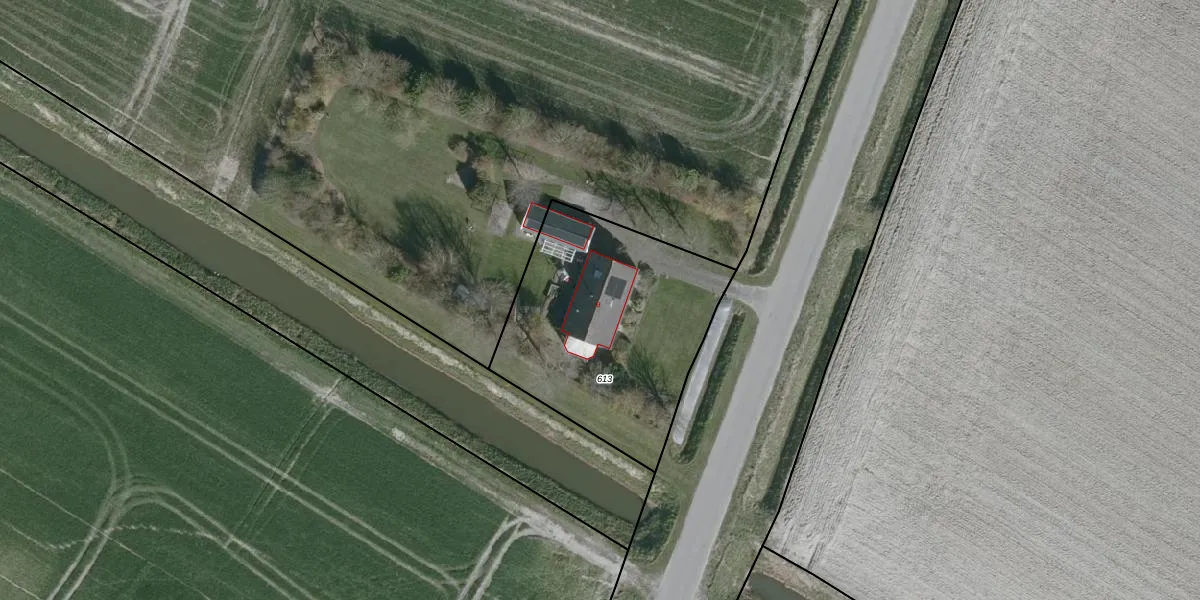 Het adres is gelegen op perceel 613 in de sectie G en de kadastrale gemeente Bruinisse. De kadastrale aanduiding is aldus BNS00-G-613. Het perceel is kleiner dan gemiddeld in Bruinisse. Het perceel is 1130 m² groot, terwijl het gemiddelde ligt op 1,2 ha. Het kleinste perceel in de kadastrale gemeente is 1 m² groot. De grootste perceeloppervlakte is 8,20 km². Er zijn geen andere adressen aanwezig op het perceel. De huidige grenzen van het perceel zijn digitaal in de Basisregistratie Kadaster (BRK) geregistreerd op 30-05-2006.