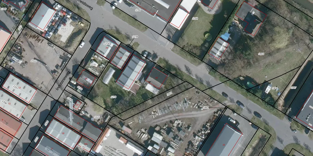 Het perceel waarop Nijverheidsweg 18 staat heeft een oppervlakte van 1313 m². Dit is een zeer groot perceel. De perceeloppervlakte wordt geregistreerd door het Kadaster. Gedetailleerde informatie over de maten van dit perceel kunt u vinden in het rapport Kadastrale kaart met maatvoering van Nijverheidsweg 18.