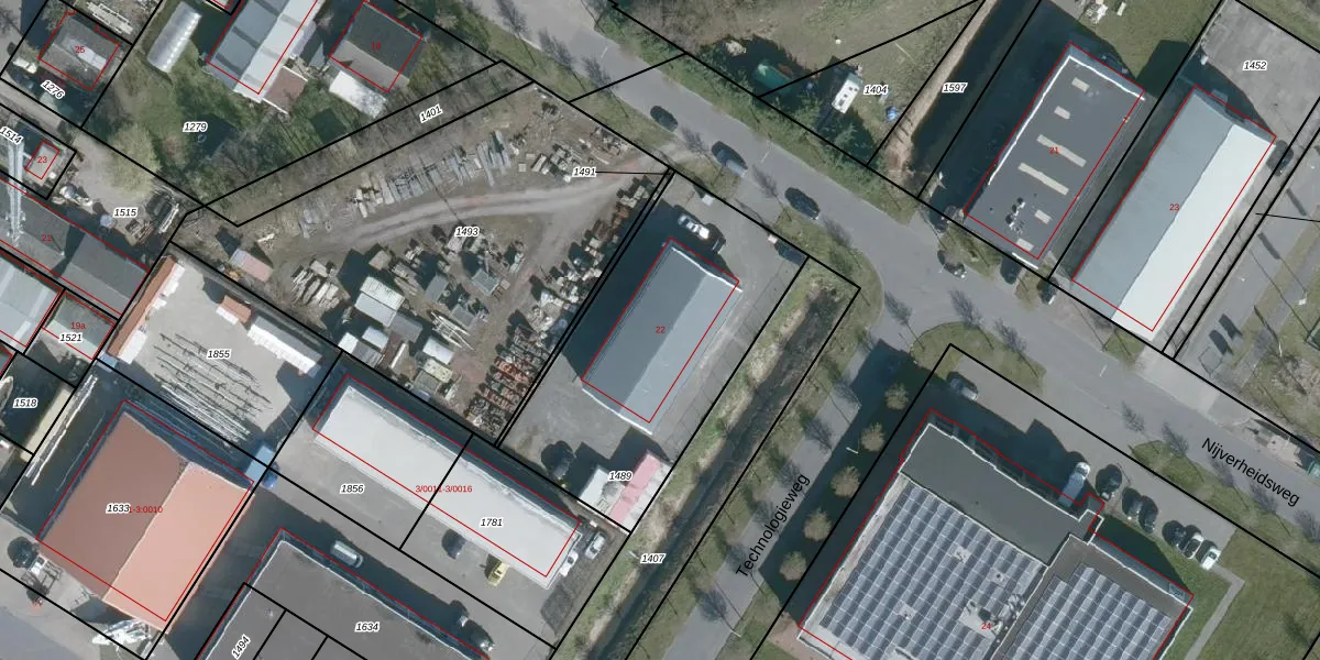 Het perceel waarop Nijverheidsweg 22 staat heeft een oppervlakte van 1198 m². Dit is een zeer groot perceel. De perceeloppervlakte wordt geregistreerd door het Kadaster. Gedetailleerde informatie over de maten van dit perceel kunt u vinden in het rapport Kadastrale kaart met maatvoering van Nijverheidsweg 22.